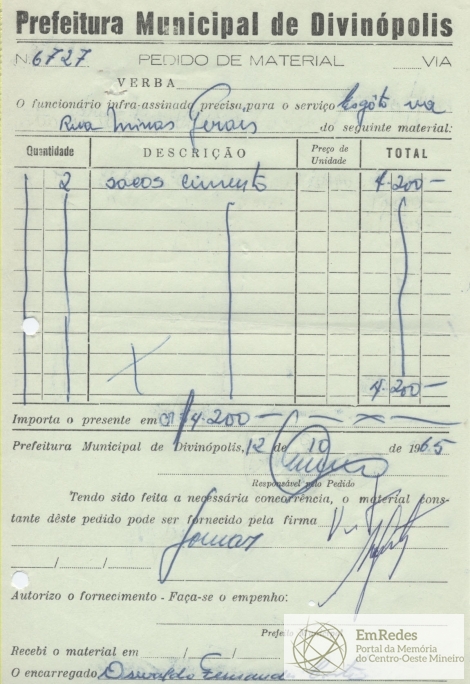 PREFEITURA MUNICIPAL DE DIVINÓPOLIS, 25 DE OUTUBRO DE 1965.