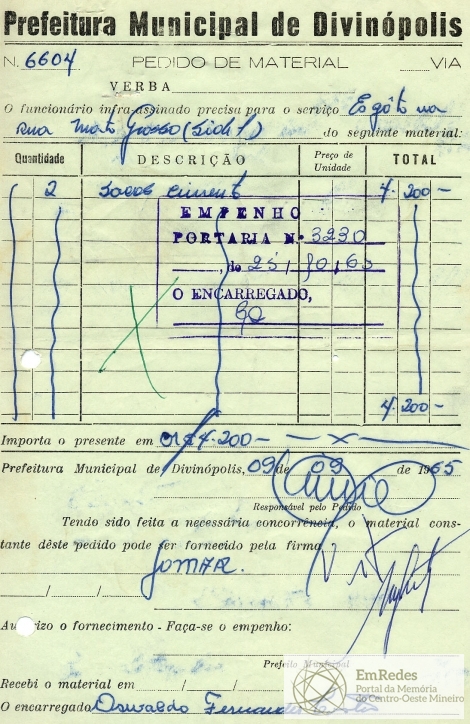 PREFEITURA MUNICIPAL DE DIVINÓPOLIS, 25 DE OUTUBRO DE 1965.