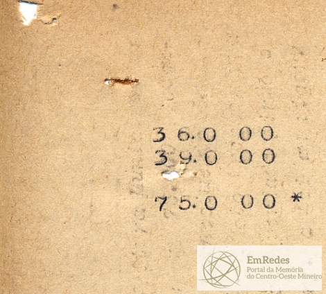 RECEBI DO SR. CHEFE DO SERVIÇO DE FAZENDA, A IMPORTÂNCIA SUPRA DE SETENTA E CINCO MIL CRUZEIROS DA QUAL PASSO O PRESENTE RECIBO EM TRIPLICATA.