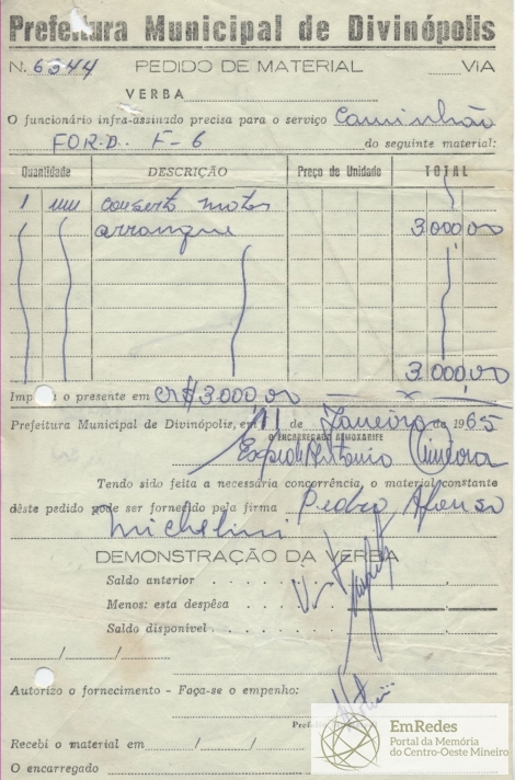 PREFEITURA MUNICIPAL DE DIVINÓPOLIS, 23 DE FEVEREIRO DE 1965.