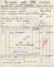 RECEBI DP SR. CHEFE DO SERVIÇO DE FAZENDA A IMPORTÂNCIA SUPRA DE DEZ MIL E CEM CRUZEIROS DA QUAL PASSO O PRESENTE RECIBO EM TRIPLICATA.
