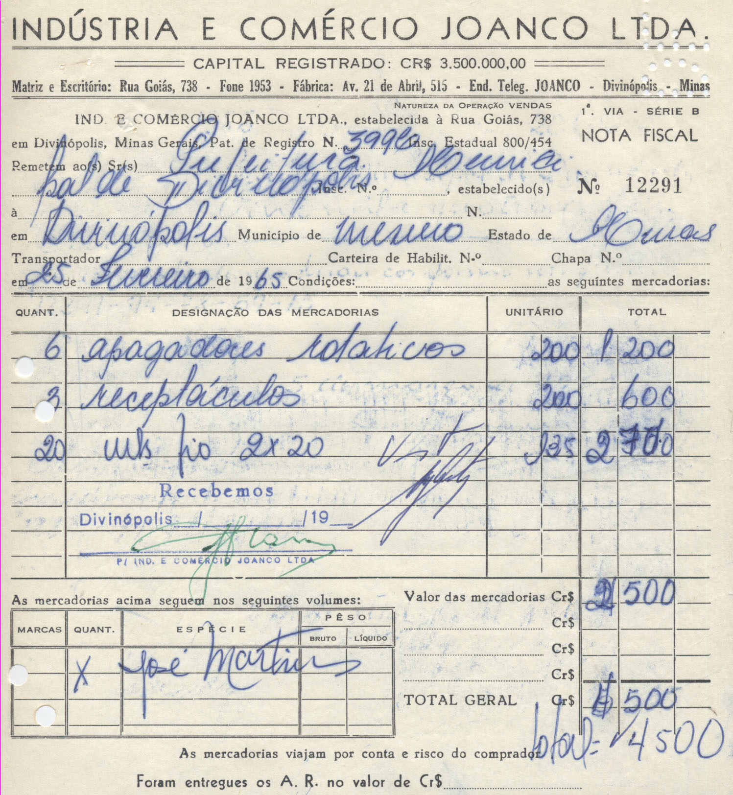 DIVINÓPOLIS, 15 DE MARÇO DE 1965.