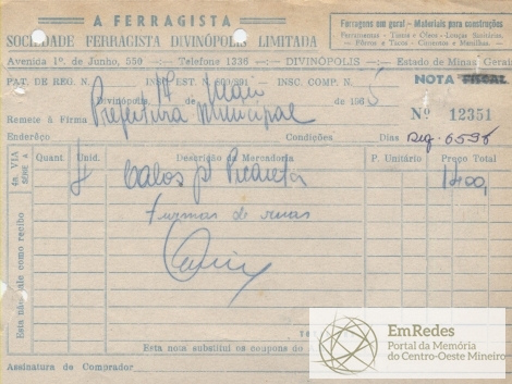 PREFEITURA MUNICIPAL DE DIVINÓPOLIS, 21 DE JUNHO DE 1965.