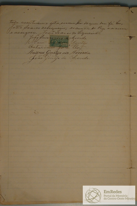 ESCRITURA PÚBLICA DE COMPRA E VENDA DE BENS DE RAIZ QUE FAZEM MARIA THEODORA GONTIJO A OCTAVIANO JOSE ELOY, A VENDA DE PARTES DE UMA CASA, NA RUA ESPIRITO SANTO PELO PREÇO DE 350 MIL REIS.