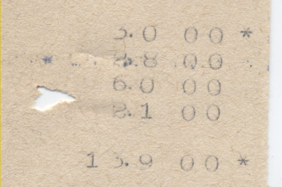 RECEBI DO SR. CHEFE DO SERVIÇO DE FAZENDA, A IMPORTÂNCIA SUPRA DE TREZE MIL E NOVECENTOS CRUZEIROS DA QUAL PASSO O PRESENTE RECIBO EM TRIPLICATA.
