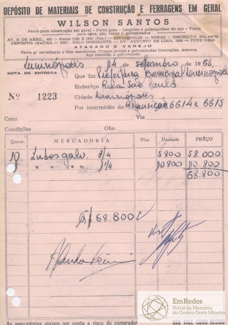 PREFEITURA MUNICIPAL DE DIVINÓPOLIS, 14 DE OUTUBRO DE 1965.