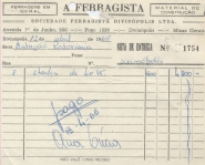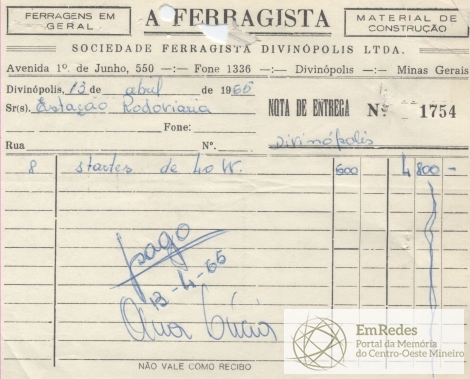 FICA O SR. CHEFE DO SERVIÇO DE FAZENDA AUTORIZADO A PAGAR AO SR. SOCIEDADE FERRAGISTA DIVINÓPOLIS LTDA. A QUANTIA DE DEZESSEIS MIL, SETECENTOS E CINQUENTA CRUZEIROS PROVENIENTE DE FORNECIMENTOS DE DIVERSOS MATERIAIS P/ ESTAÇÃO RODOVIÁRIA DA CIDADE.