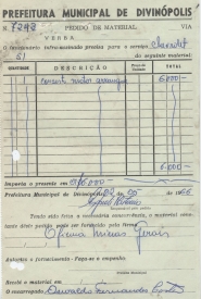 RECEBI DA PREFEITURA MUNICIPAL DE DIVINÓPOLIS A IMPORTÂNCIA DE CR$ 6.000,00 (SEIS MIL CRUZEIROS) CONSTANTE DESTA NOTA DE EMPENHO, DA QUAL É DADA A PRESENTE QUITAÇÃO EM TRIPLICATA.