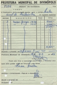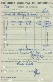 RECEBI DA PREFEITURA MUNICIPAL DE DIVINÓPOLIS A IMPORTÂNCIA DE CR$ 34.600,00 (TRINTA E QUATRO MIL E SEISCENTOS CRUZEIROS) CONSTANTE DESTA NOTA DE EMPENHO, DA QUAL É DADA A PRESENTE QUITAÇÃO EM TRIPLICATA.
