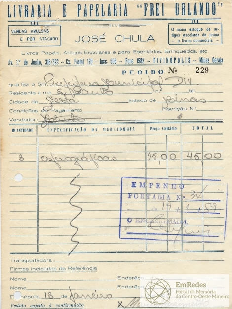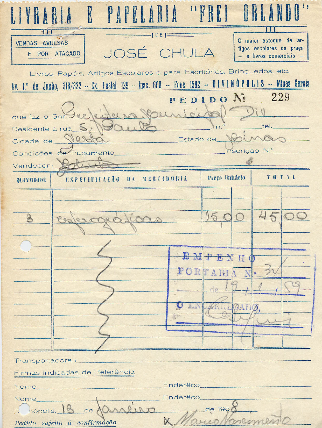 PREFEITURA MUNICIPAL DE DIVINÓPOLIS, 19 DE JANEIRO DE 1959
