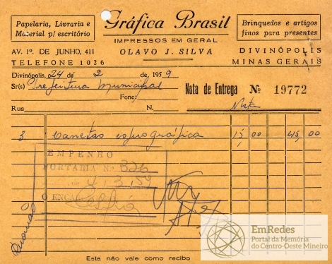 PREFEITURA MUNCIPAL DE DIVINÓPOLIS, 04 DE MARÇO DE 1959