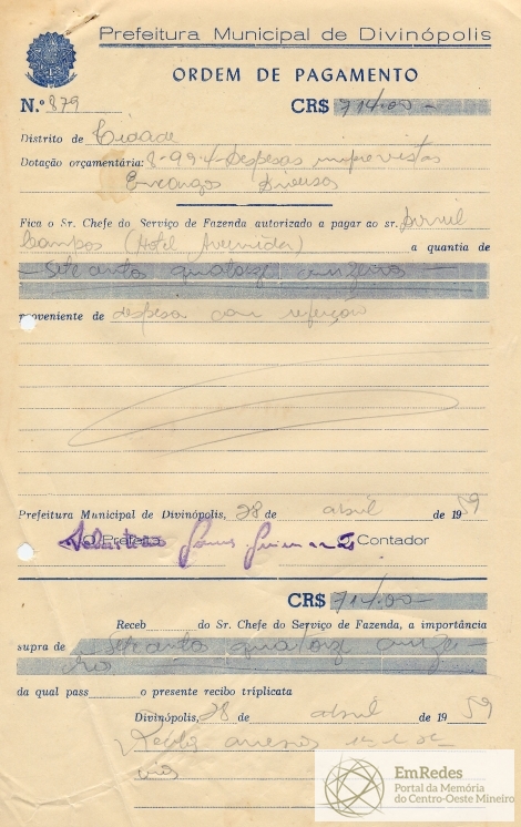 PREFEITURA MUNICIPAL DE DIVINÓPOLIS, 28 DE ABRIL DE 1959