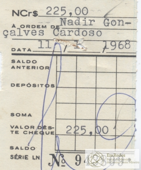 RECEBI DA PREFEITURA MUNICIPAL DE DIVINÓPOLIS A IMPORTÂNCIA DE CR$ 225,00 (DUZENTOS E VINTE CINCO CRUZEIROS NOVOS) CONSTANTE DESTA NOTA DE EMPENHO, DA QUAL É DADA A PRESENTE QUITAÇÃO EM TRIPLICATA.