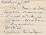 A FAVOR DE BENEDITO FRANCISCO, RELATIVA A FORNECIMENTO DE 3 METROS DE BRITA P/ CONSTRUÇÃO DA PONTE QUE LIGA A CIDADE AO GRAVATÁ CONFORME REQUISIÇÃO ANEXA, PELA DOTAÇÃO 411095 INDENIZAÇÃO, CONSTRUÇÃO, ABERTURAS, E CALÇAMENTO DE RUAS E PRAÇAS/HABITAÇÃO E SERVIÇOS URBANOS EM 31 DE DEZEMBRO DE 1967.