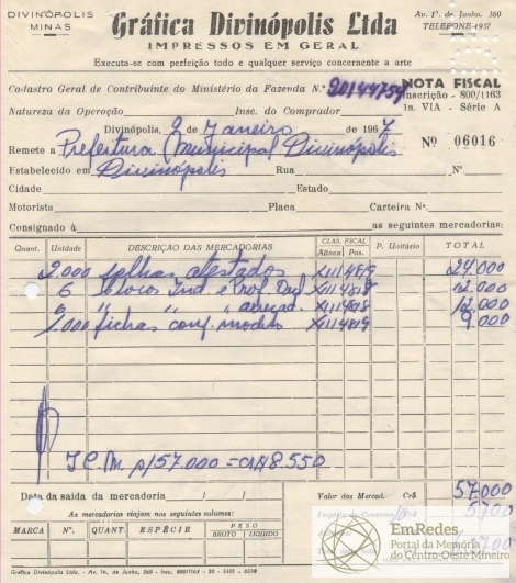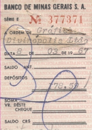 RECEBI DA PREFEITURA MUNICIPAL DE DIVINÓPOLIS A IMPORTÂNCIA DE CR$98,04 (NOVENTA E OITO CRUZEIROS E QUATRO CENTAVOS) CONSTANTE DESTA NOTA DE EMPENHO, DA QUAL É DADA A PRESENTE QUITAÇÃO EM TRIPLICATA.