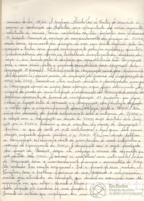 Subsérie: LIVROS CONSELHO DIRETOR FUNEDI E CONGREGAÇÃO