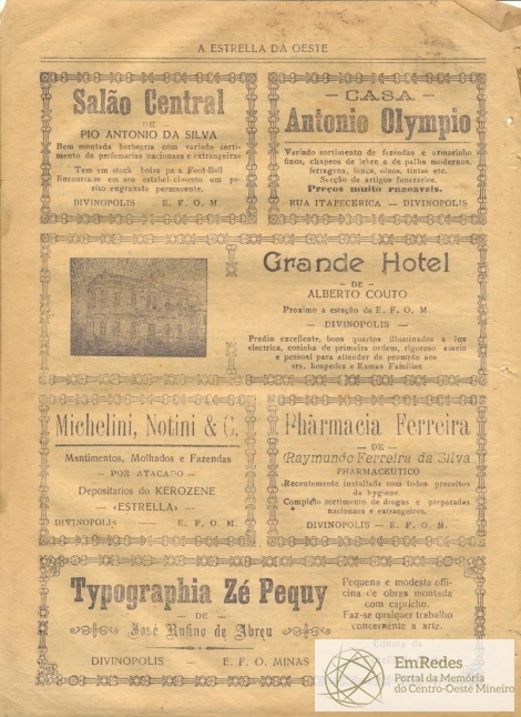 Quarta página do jornal A Estrella do Oeste, ano I, número 3. Divinópolis, 01/10/1922.
