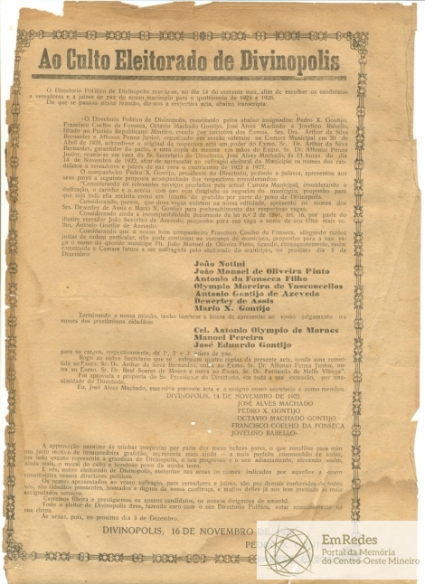 Redator: Raymundo Ferreira da Silva / Colaboradores: Diversos. Resumo: A edição exalta as características de Divinópolis, tem uma nota de falecimento da mãe de Raul Soares, observações sobre as características do casamento durante as gerações, Comemorações, lançamento de um livro além de notas diversas, publicidades e uma carta ao eleitorado.