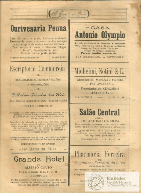 Jornal - A Estrella do Oeste - A Estrella d Oeste - A Estrella da Oeste - Divinópolis - Jornal - A Estrella da Oeste - Pedro X. Gontijo - Santo Antônio dos Campos - Anexação - História - Independência - Brasil - Disputas Social - Políticas - Religiosidade - Publicidades.