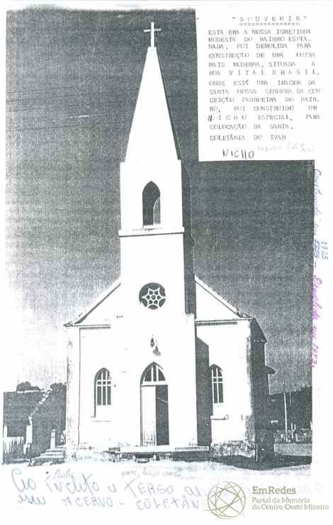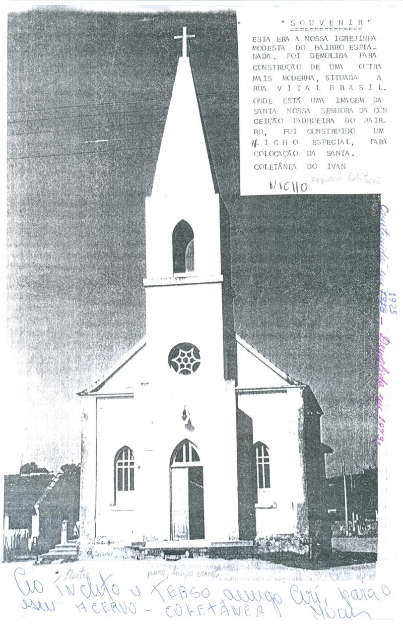 Reprodução da imagem original da Igreja Nossa Senhora da Conceição, padroeira do Bairro Esplanada. Segundo o documento, a igreja foi construída em 1925 e demolida em 1973.