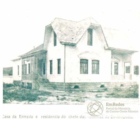 Casa do engenheiro chefe da oficina da RMV – Rede Mineira de Viação. Construída em 1914 e demolida em 1965. Segundo informações do verso da imagem, a casa ficava situada na Rua Benjamim de Oliveira, no Bairro Esplanada em Divinópolis.