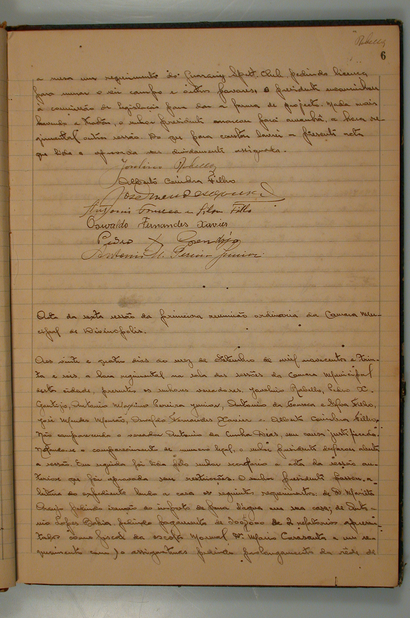 ATA DA 6ª SESSÃO PARA A PRIMEIRA REUNIÃO ORDINÁRIA DA CÂMARA MUNICIPAL DE DIVINÓPOLIS.