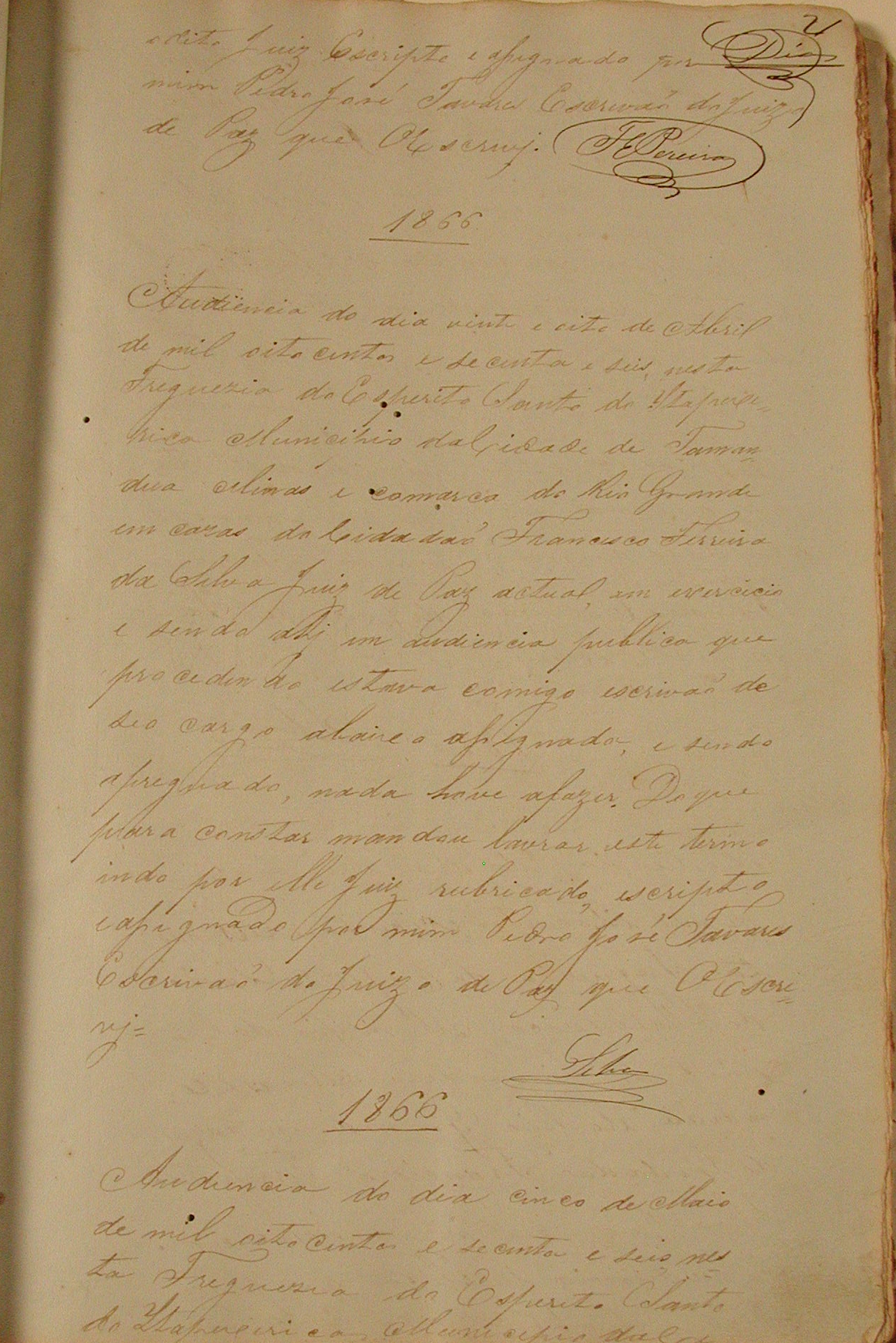 Escrivão - Arraial - Espirito Santo do Itapecerica - Livro de Protocolo e Audiência do Juiz de Paz - Villa do Tamanduá