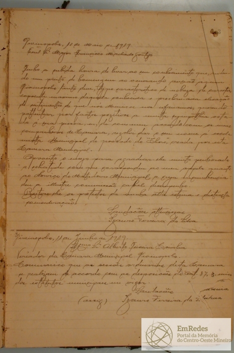 Livro de Registro Oficial de Correspondências - Câmara Municipal de Divinópolis