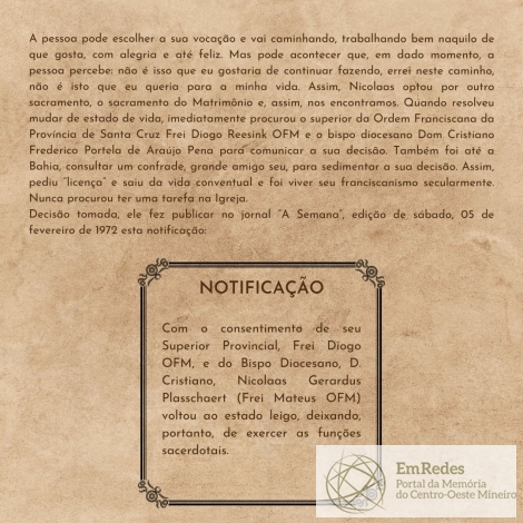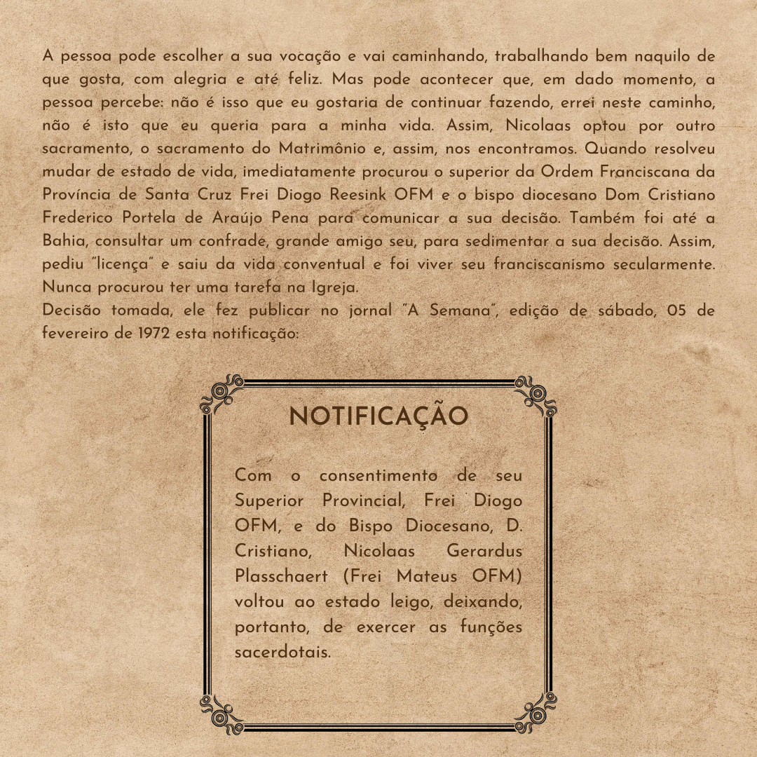 Biografia Prof. Nicolaas Plasschaert (Frei Mateus), escrita por sua esposa, Lúcia Santos, em setembro de 2021.