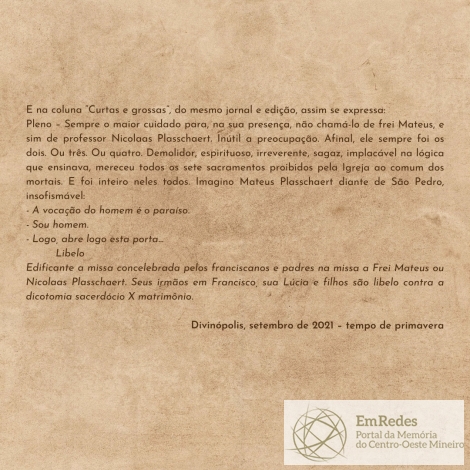 Biografia Prof. Nicolaas Plasschaert (Frei Mateus), escrita por sua esposa, Lúcia Santos, em setembro de 2021.