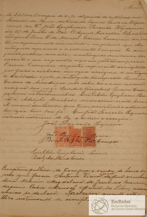Escrivão - Arraial - Acta - Espírito Santo do Itapecerica - Escritura de Compra e Venda de Bens de Raiz - Hipotecas - Eleições