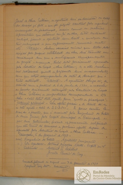 TERMO: DE AJUSTE ENTRE O ENGENHEIRO DO ESTADO DE MG, AGOSTINHO JUNQUEIRA, E A PREFEITURA DE DIVINOPOLIS PARA EXECUÇÃO DAS OBRAS DE CONSERTO DO PREDIO DA PREFEITURA LOCAL; NO VALOR DE TRÊS CONTOS, DUZENTOS E TREZE MIL E OITOCENTOS REIS.