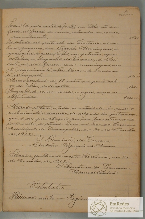 RESOLUÇÃO Nº 004 ORÇA A RECEITA E FIXA A DESPESA PARA 1913. FIXA AS TABELAS DE COBRANÇAS DE IMPOSTOS PARA PRESTADORES DE COBRANÇAS DE IMPOSTOS, PARA PRESTADORES DE SERVIÇOS E PROFISSIONAIS LIBERAIS. PRESIDENTE DA CÂMARA: ANTONIO OLYMPIO DE MORAES. SECRETÁRIO DA CÂMARA: MANUEL PEREIRA.
