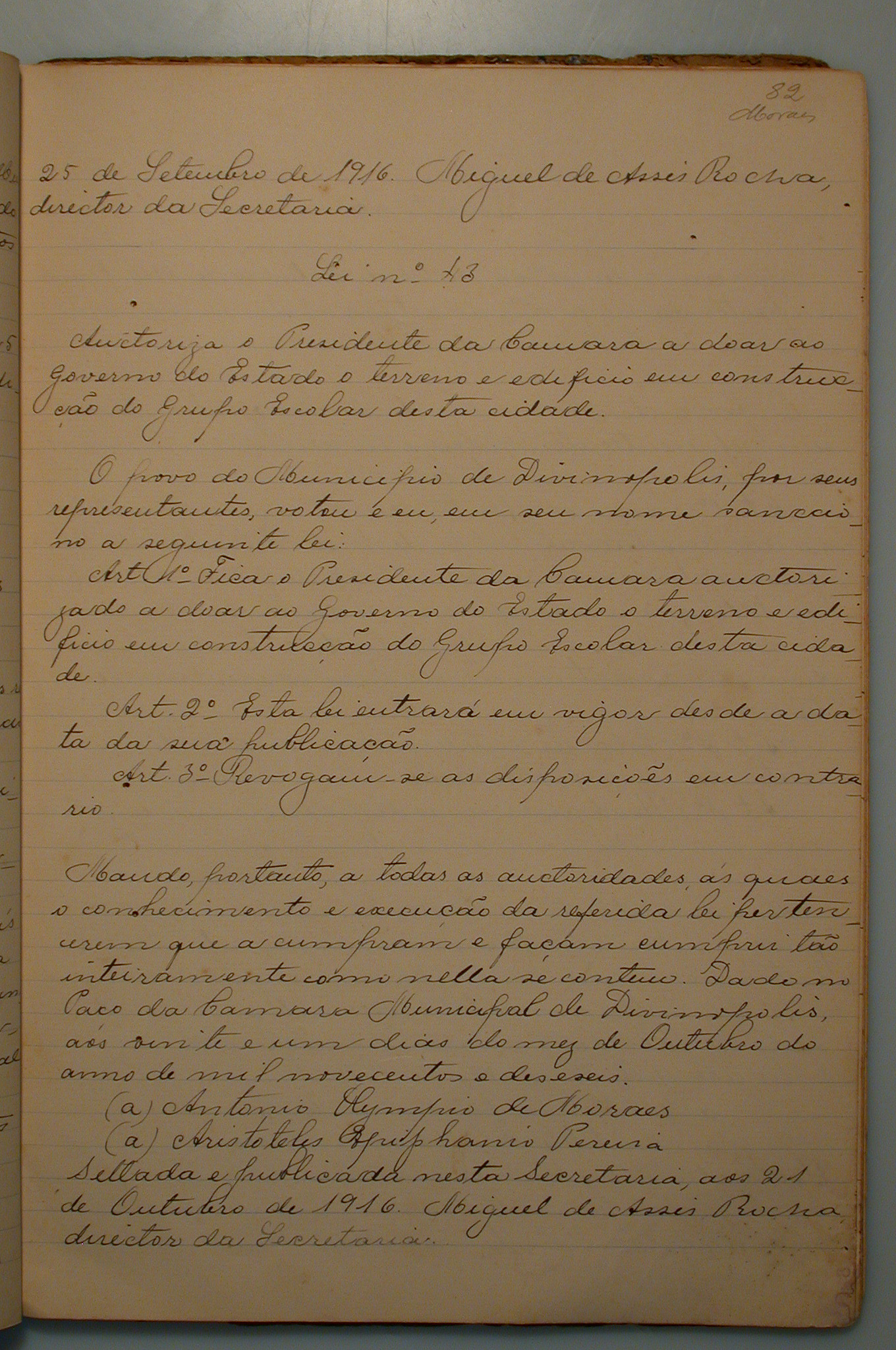 PRESIDENTE DA CÂMARA: ANTÔNIO OLYMPIO DE MORAES.