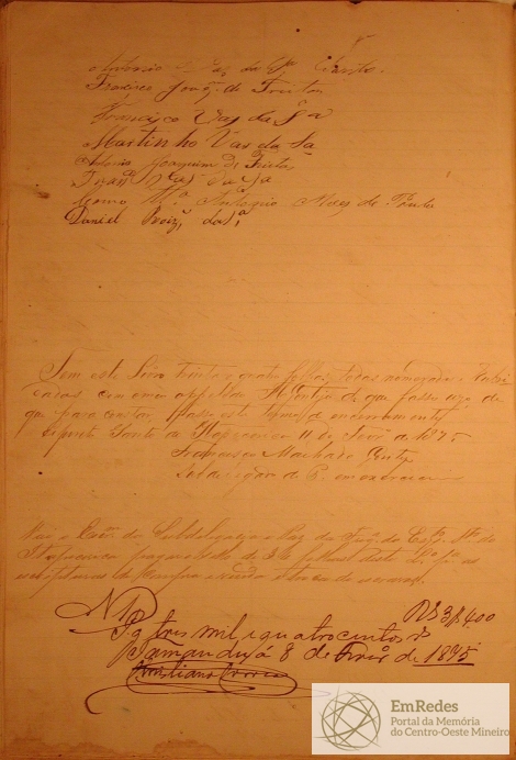 ESCRITURA PÚBLICA DE COMPRA E VENDA QUE FAZEM MARIA JOSÉ DE SANTANA, BASÍLIO VAZ DA SILVA COMO AUTORGANTES VENDEDORES E MIGUEL VAZ DA SILVA, NO ESPÍRITO SANTO DO ITAPECERICA NO LUGAR DENOMINADO VASES, A VENDA DE UM ESCRAVO DE NOME VICENTE DE 20 ANOS DE IDADE PELA QUANTIA DE 7 CONTOS E TRINTA E SEIS MIL REIS.
