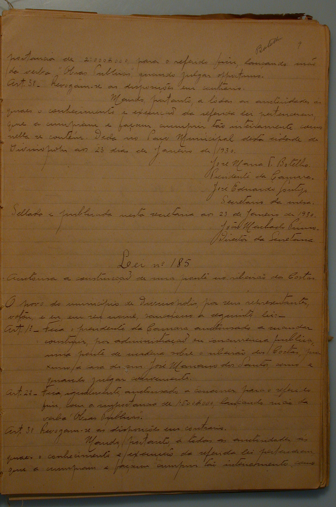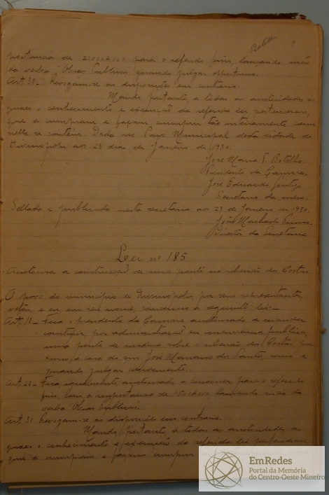 Câmara Municipal - Livro - Registro de Leis e Orçamentos