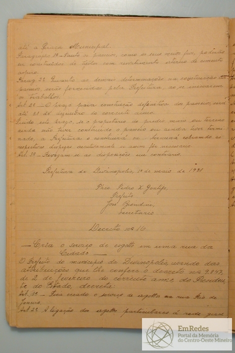 PREFEITO: PEDRO XAVIER GONTIJO.