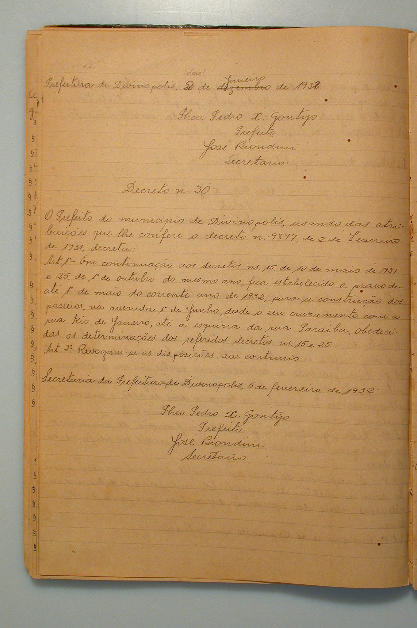PREFEITO: PEDRO XAVIER GONTIJO.