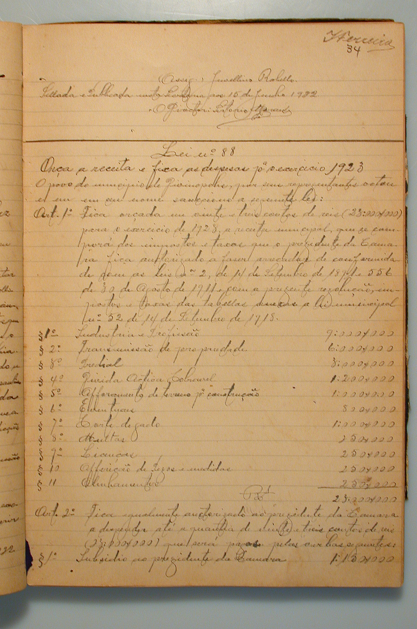 ORÇA A RECEITA E FIXA AS DESPESAS PARA O EXERCÍCIO DE 1923.