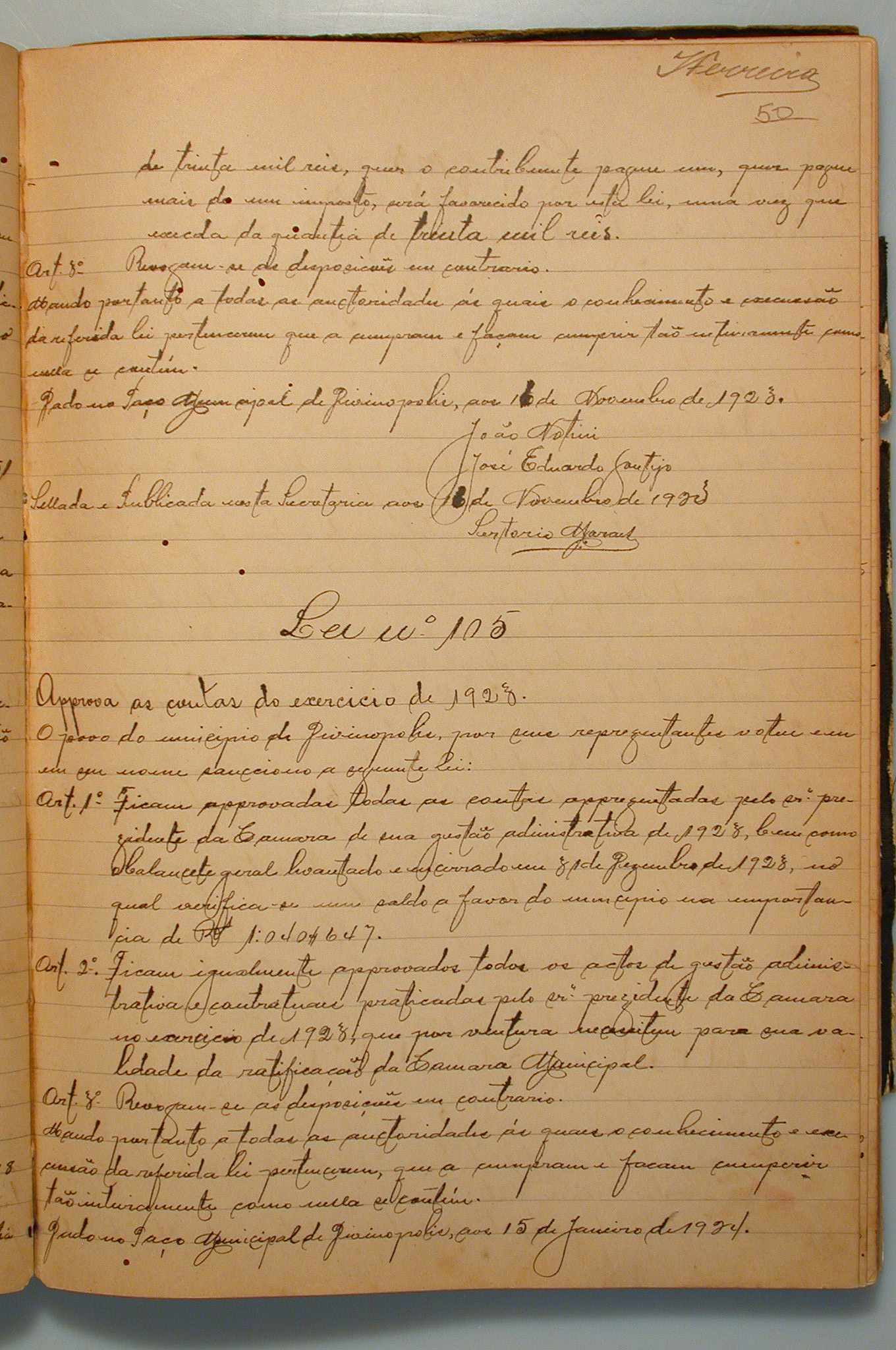 Câmara Municipal - Registro de Leis e Orçamentos - Livro