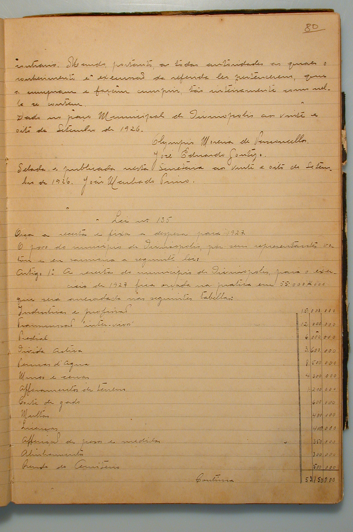 Câmara Municipal - Registro de Leis e Orçamentos - Livro