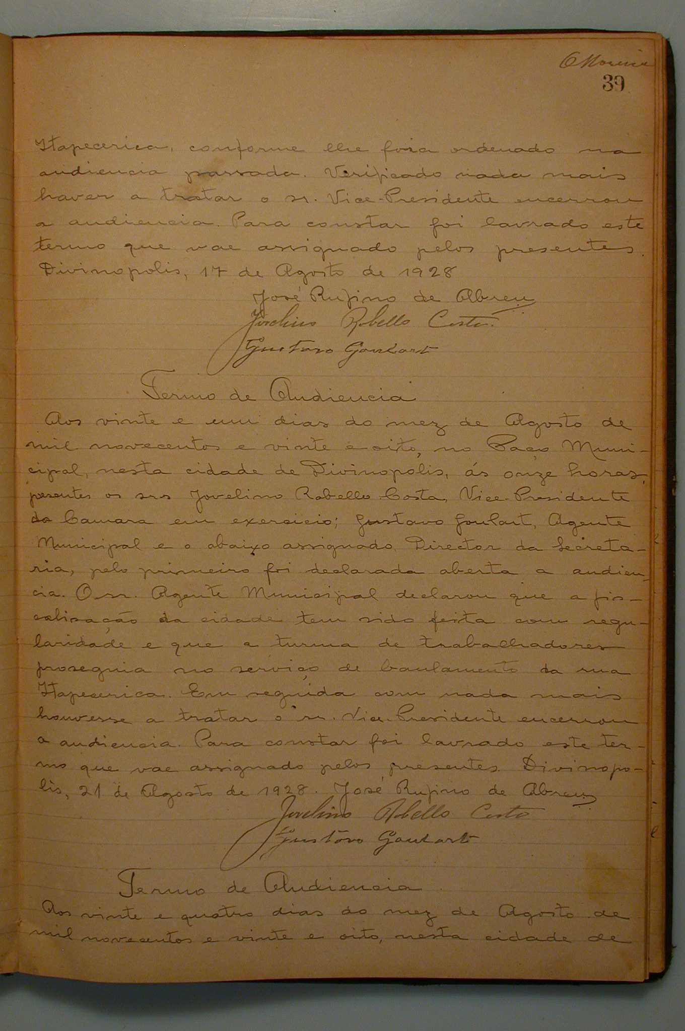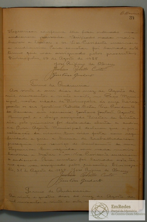 Livro - Registros - Termos de Audiência - Câmara Municipal de Divinópolis